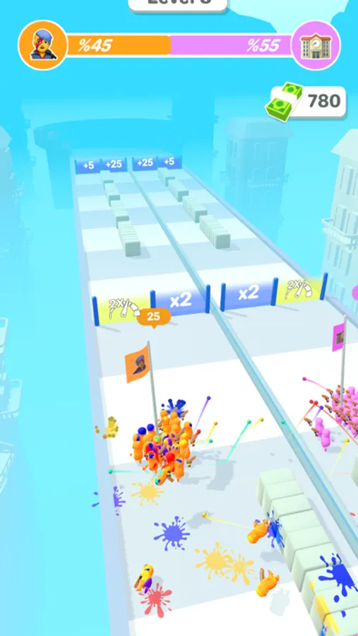 Choose your side by answering the fun questions. Grow your team. Then defend your opinion against your opponents using paint guns.
