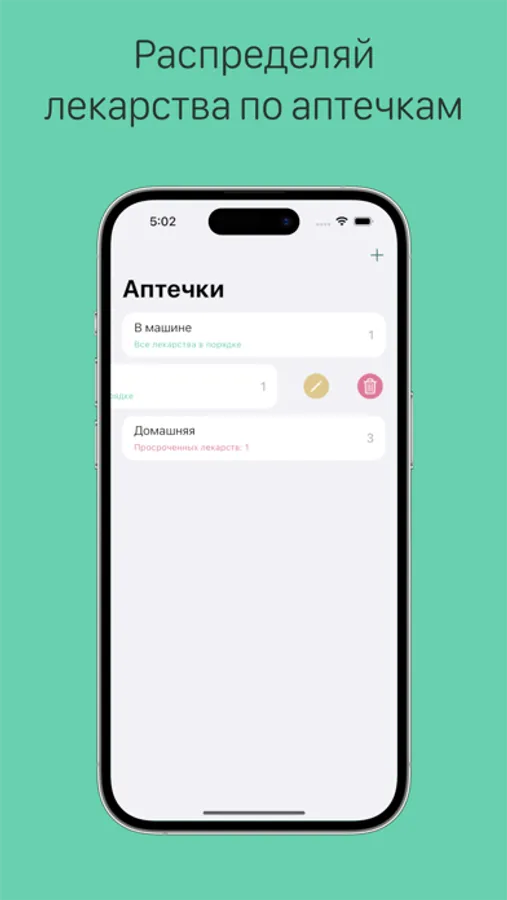 Для тех, у кого не одна аптечка, поиск поможет найти и их. Для удобства, распределяйте лекарства по аптечкам, созданным самостоятельно: