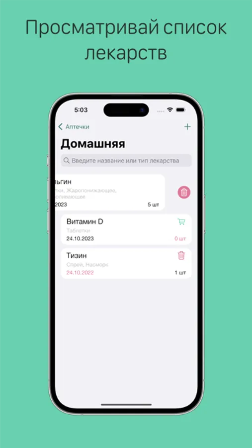Поиск в приложении помогает искать лекарство в аптечке по параметрам: