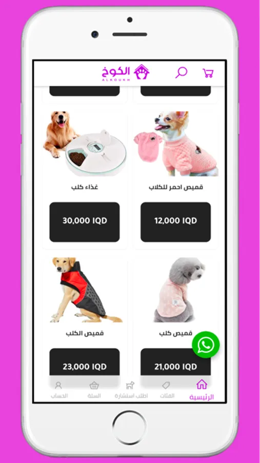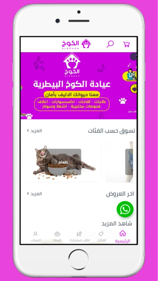 يوفر تطبيق الكوخ جميع مستلزمات الحيوانات الاليفه ومن افضل المناشيء العالميه والماركات المعروفه