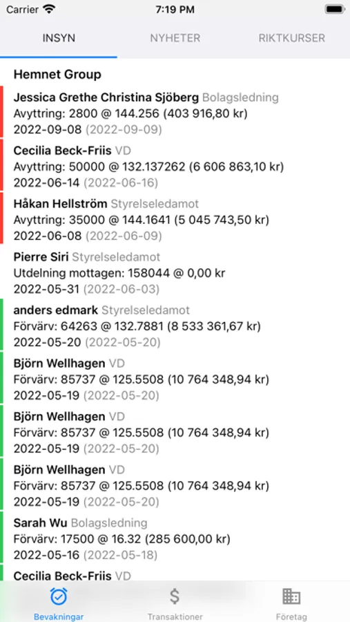 Insyn Finance hjälper dig som investerar i aktier att följa insynstransaktioner, marknadsmeddelanden och riktkurser. Insyn Finance ger dig omedelbara pushnotiser för dina favoritmarkerade bolag på Large Cap Stockholm, Mid Cap Stockholm, Small Cap Stockholm, Nordic SME, Spotlight, Oslobörs och Helsingforsbörsen.