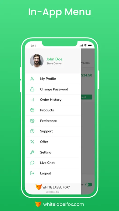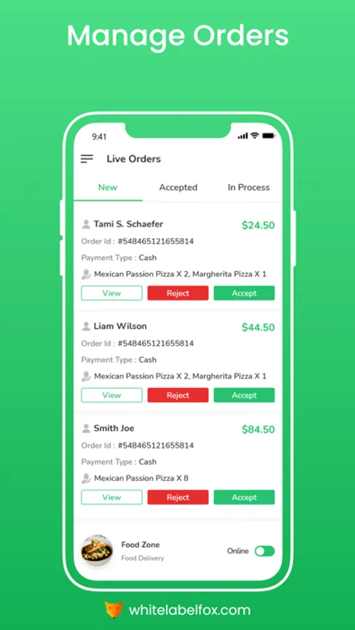Through the Fox-Jek Store application, the store owner can accept and manage their food delivery, grocery delivery, flowers delivery, liquor delivery, medicine delivery, and more services order within the app.