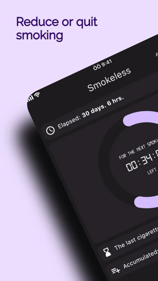 The Smokeless app supports you at every step in the process of quitting smoking and motivates you to quit. Download the Smokeless app to track and motivate your progress towards quitting smoking and take steps towards a healthier life. Track your progress and take steps towards a healthier life.