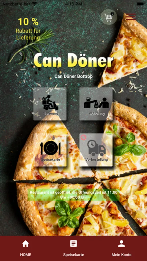 Herzlich Willkomen bei Can Döner in Bottrop. Wir bedienen unsere Kunden mit Döner, Türkisch, Pizza Speisen und machen das seit mehreren Jahren aus Leidenschaft. Wir freuen uns immer wieder neue Kunden unsere Herkunft näher zubringen und möchten ihnen die Möglichkeit geben, ihre Bestellung unkompliziert und total einfach abzugeben. Aus diesem Grund, möchte wir ihnen unsere neue App und unseren Online Shop vorstellen, mit dem Sie problemlos über Paypal, Bar und Kreditkarte zahlen können.