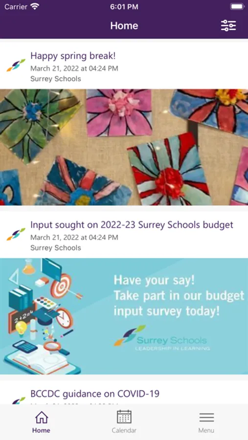 The Surrey Schools app provides news, events, announcements and alerts from Surrey School District #36.