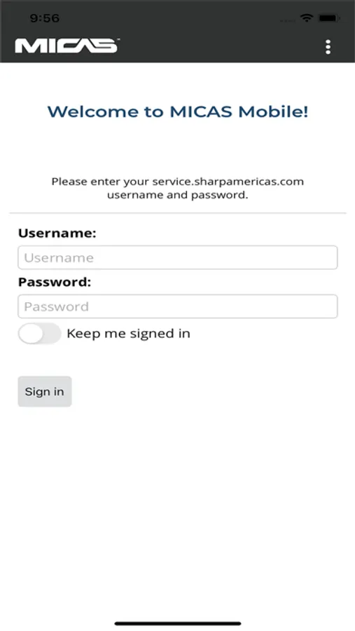Dealers need to sign up for MICAS before accessing the app. For instructions on how to sign up, go to https://service.sharpamericas.com.
