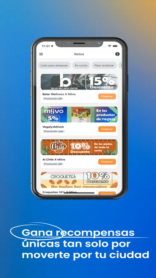 Miivo incluye también una sección de recompensas que te premiará solo por hacer tus viajes en nuestra app con descuentos, promociones y premios en comercios como Gorillas, Malferida, o Free2move.