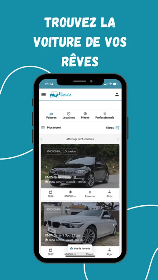L'application vous offre aussi la possibilité de louer votre véhicule ou de trouver un véhicule en location permis plus de 15 marques.