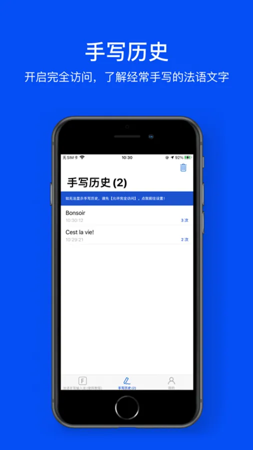 【Tip 4】 If you have downloaded the French Handwriting Keyboard and cannot find it, please restart the associated App or restart the device to try it! (or update the latest stable iOS system)
