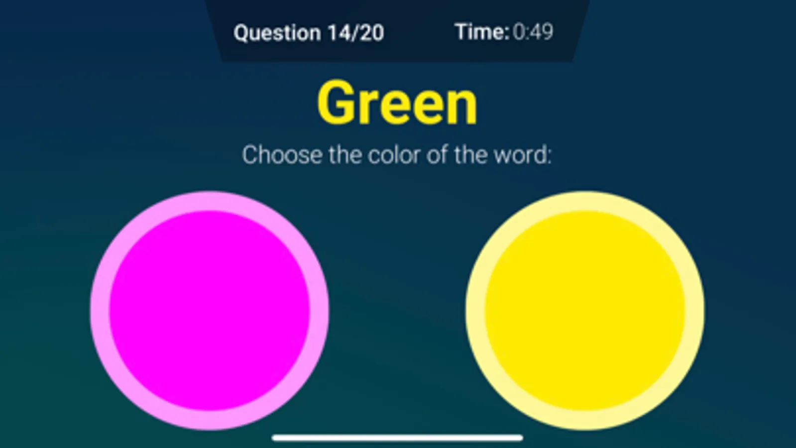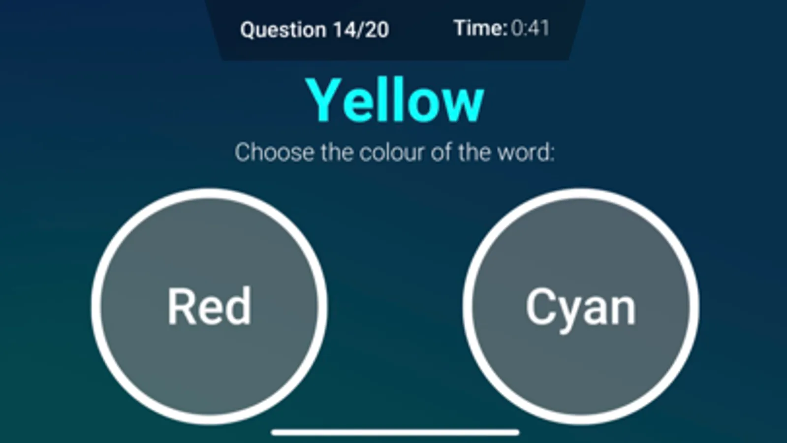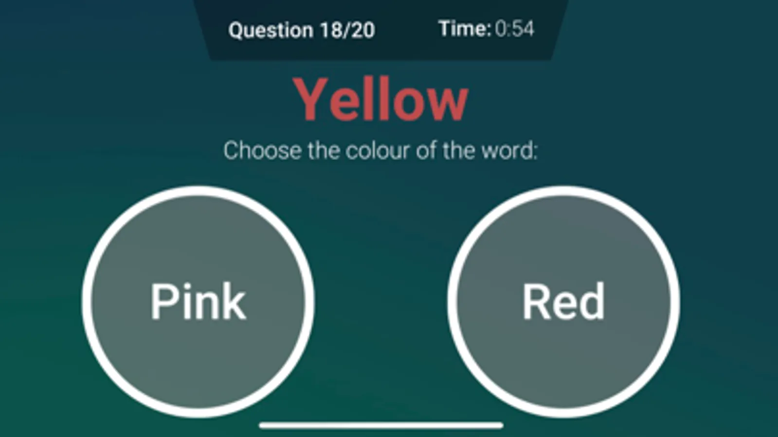 When you read a word about a color your brain immediately things of the meaning. In this test it asks to select the color of the word. The time of your reaction will be measured and shown in the graph.