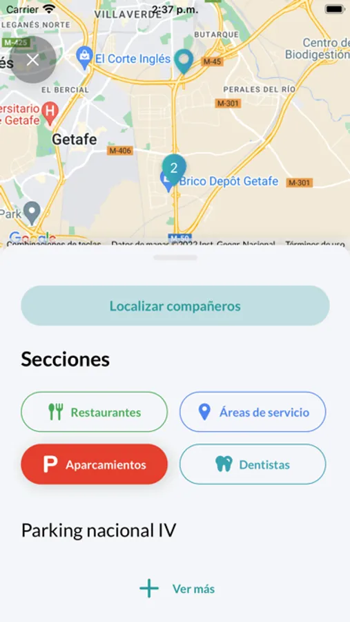 Donde puedes geolocalizar a compañeros y compañeras, encontrar las mejores áreas de servicio, parkings y restaurantes.