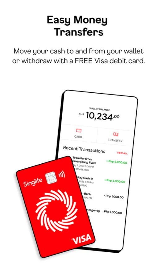 Get money in and out of the app through a Singlife Visa debit card you can request for FREE.