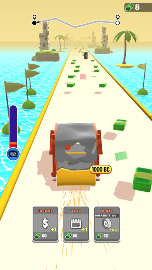 Upgrade your vehicle starting from the stone age vehicle and enjoy discovering tons of new vehicles and locations on this endless journey.
