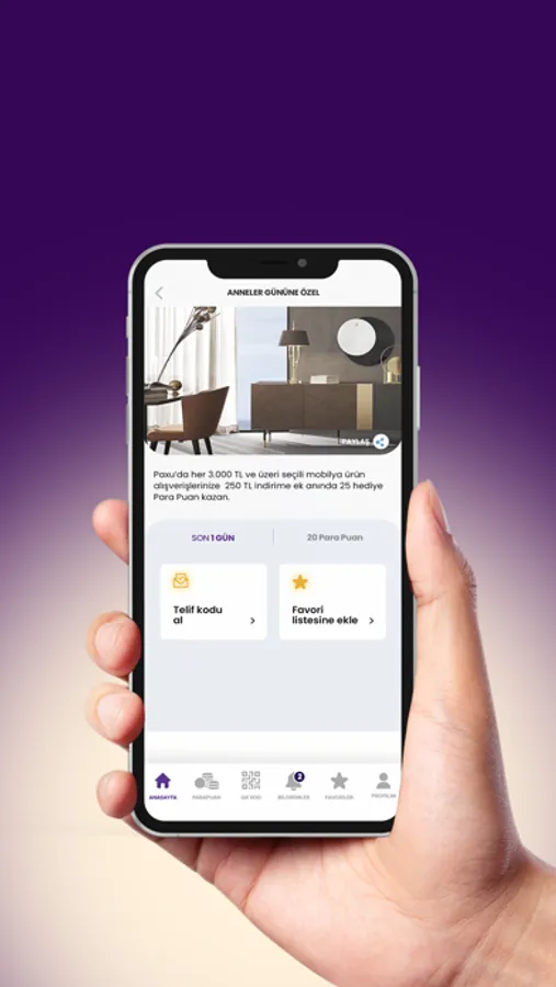 Paxu ile yaptığın alışverişlerde ve favorilerine eklediğin ürünlere özel tekliflerden faydalanabilirsin.