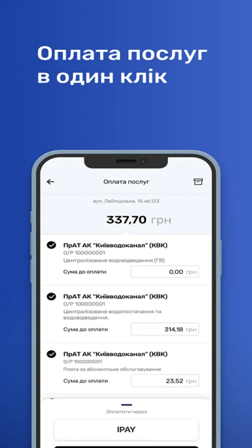- Переглядати та оплачувати рахунки за декількома адресами.