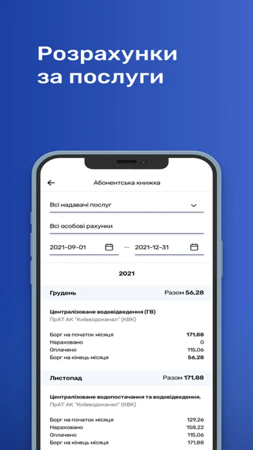- Сплачувати за послуги водопостачання та водовідведення в будь-який час доби через ваш мобільний пристрій.