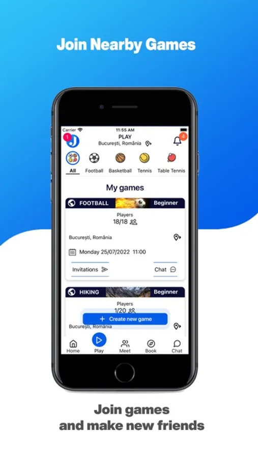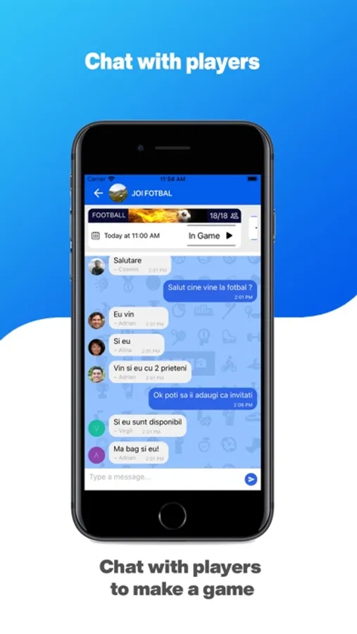 As soon as you find them, you can start chatting and organising a match within minutes.