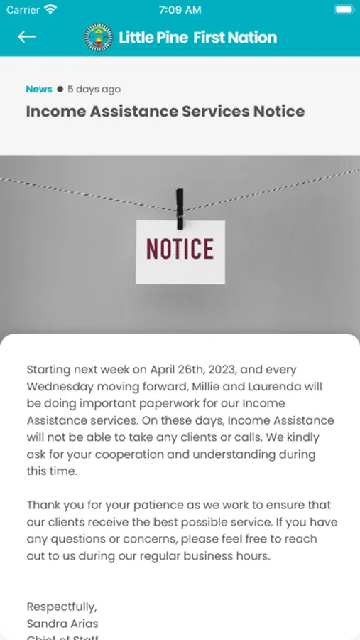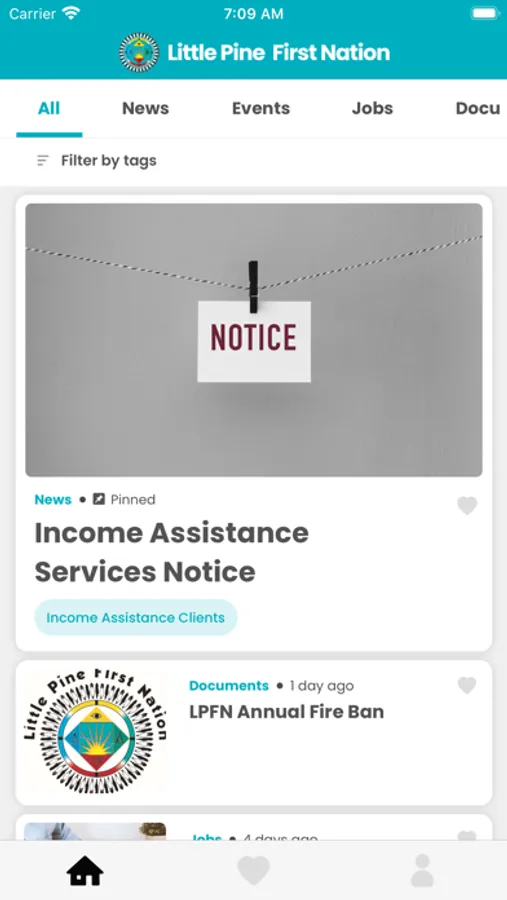 - View personalized feed supplied by the Band Office in a chronological order or by category: