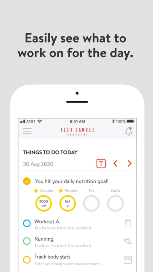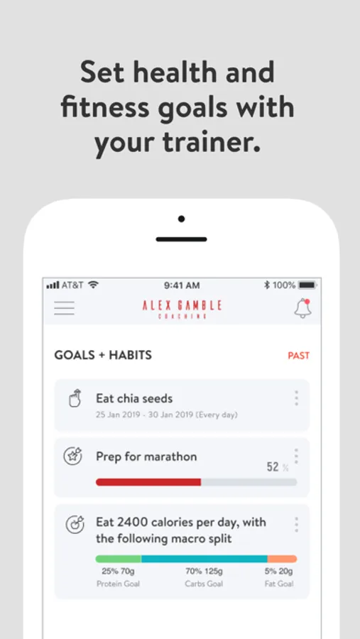 With the AG Coaching App, you can start tracking your workouts and meals, measuring results, and achieving your fitness goals, all with the help of your personal trainer.