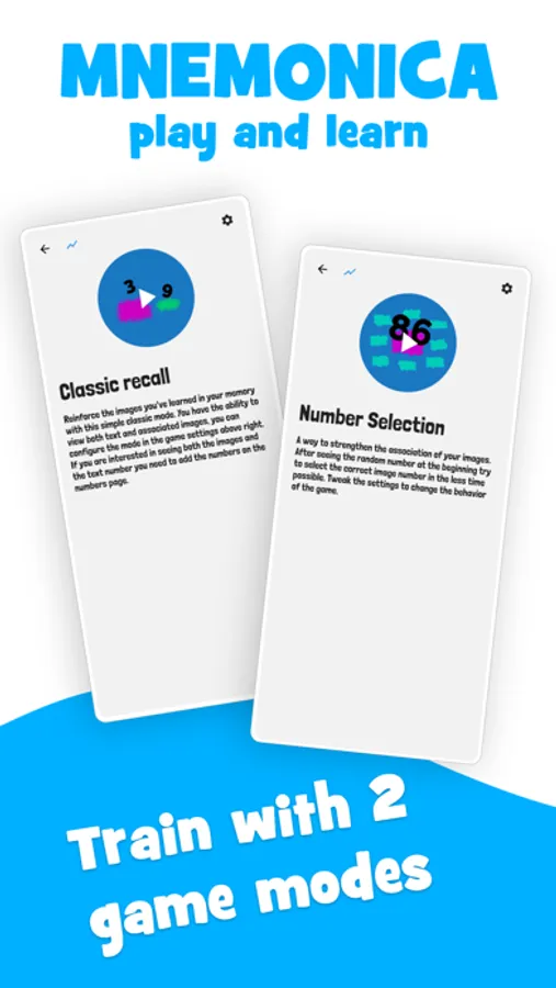The idea for this application is really simple, to help you train with the images that you have learned with the Major System in such a way that the next time that you see a number or pair of numbers immediately your brain associates the image chosen.