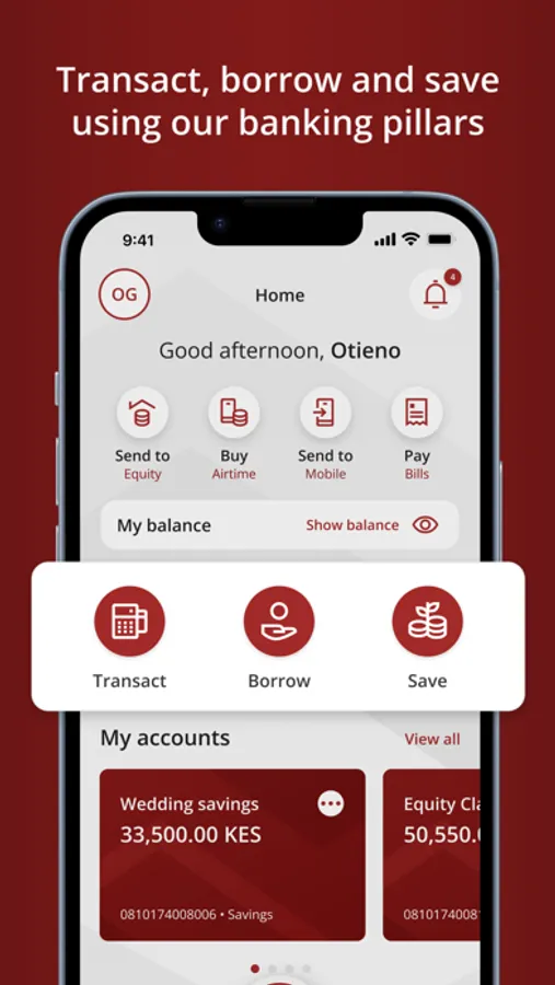 Equity mobile has revolutionised digital banking. This app gives you complete control of your financial and lifestyle needs. Simply view your balances, pay your bills, buy airtime, send money and so much more, all from one convenient platform.