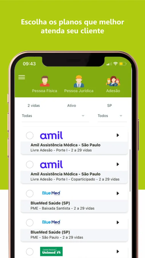 Através do TAB é possível realizar simulações de planos de saúde e odontológico das principais Operadoras e Administradoras do país, enviando de forma organizada as cotações diretamente para seus clientes.