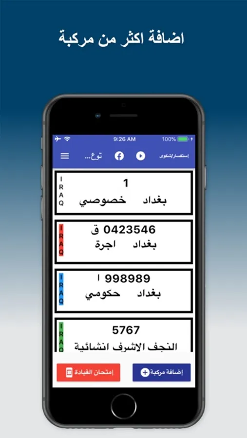اضافة اكثر من رقم مركبة في التطبيق