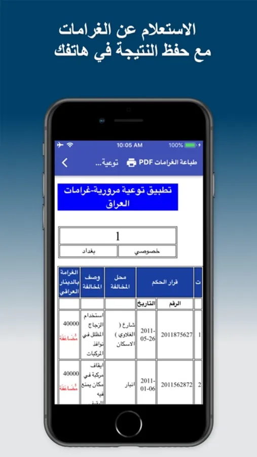 طباعة الغرامات كملف في الهاتف
