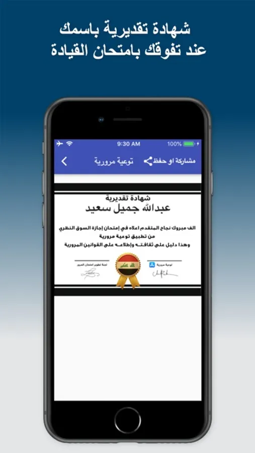 امتحان القيادة النظري مع شهادة تقديرية