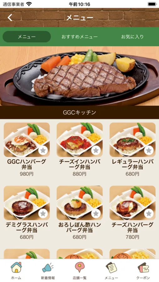 群馬県産『上州牛』を使用したステーキと手づくりハンバーグのGGCと黒毛和牛ハンバーグHappy BurgとGGCキッチンの公式アプリです。
