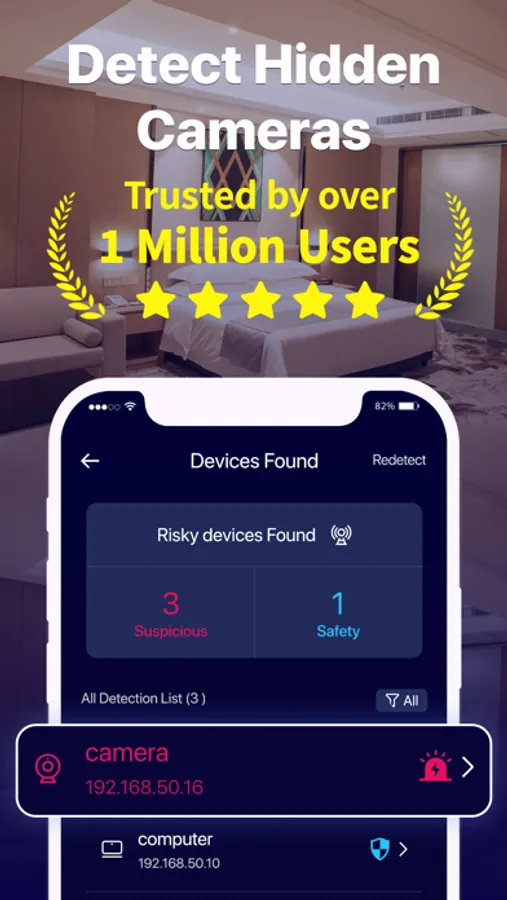 Camera Detector: Find Spy Cam, application for detect hidden cameras.