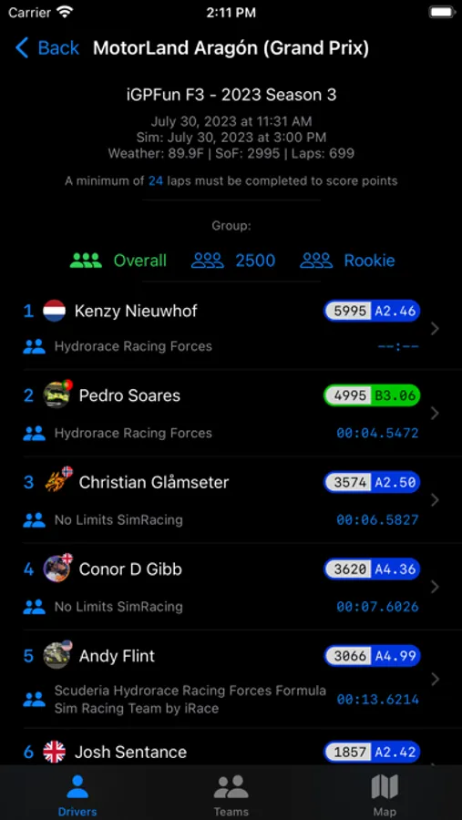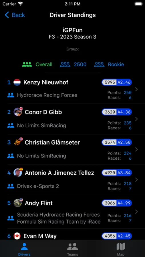• Get a clear picture of your performance with drivers and teams season standings, helping you stay on top of the leaderboard.