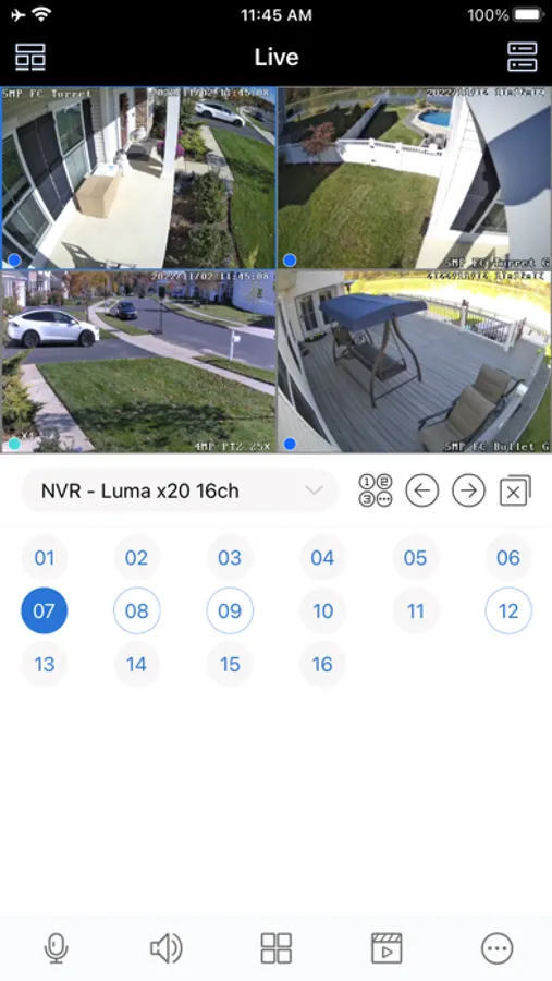 • Enjoy HD live viewing of a single or split screen (4, 9, or 16 channels simultaneously) in both portrait and landscape modes with convenient pinch to zoom