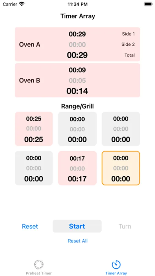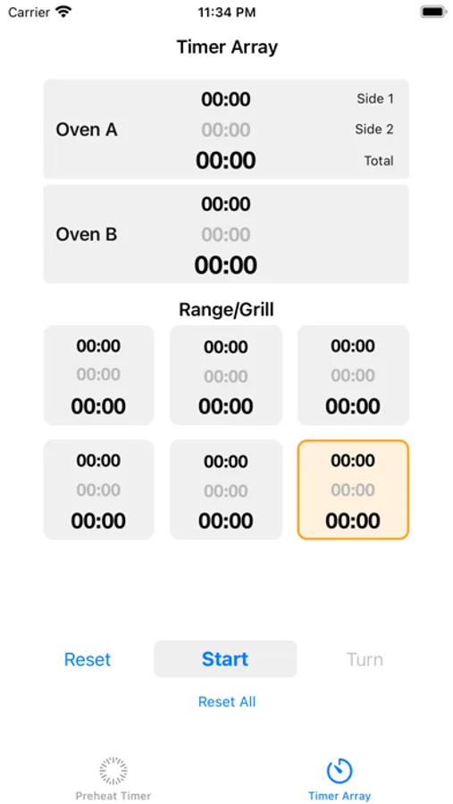 • Several timers that can be used to simultaneously keep track of items cooking, including how much time each side has been cooked.