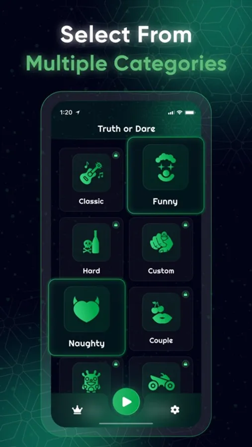 4. Questions in 8 different themes (Classic, Funny, Hard, Custom, Crazy, Couple,Naughty, and Extreme.)