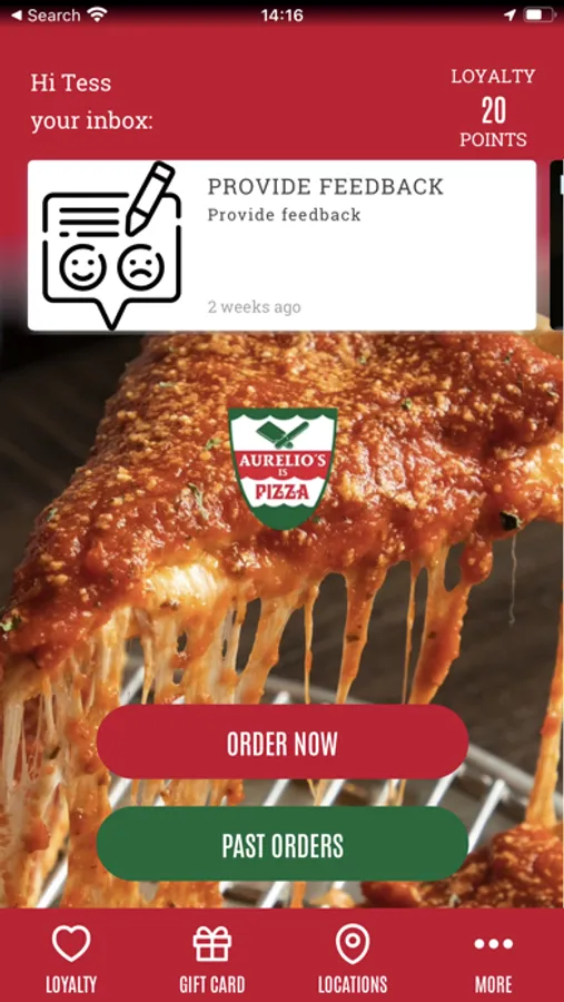 o Get extra points for referring Aurelio's Pizza to your friends!