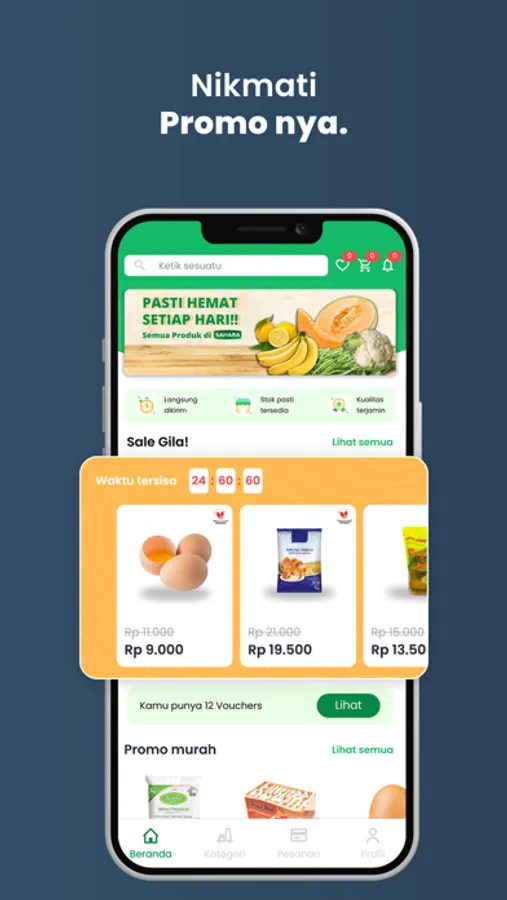 Belanja terus dengan Sembako Sahara agar kami dapat mempermudah akses masyarakat Indonesia yang lebih luas kepada produk segar dengan kualitas terjamin.