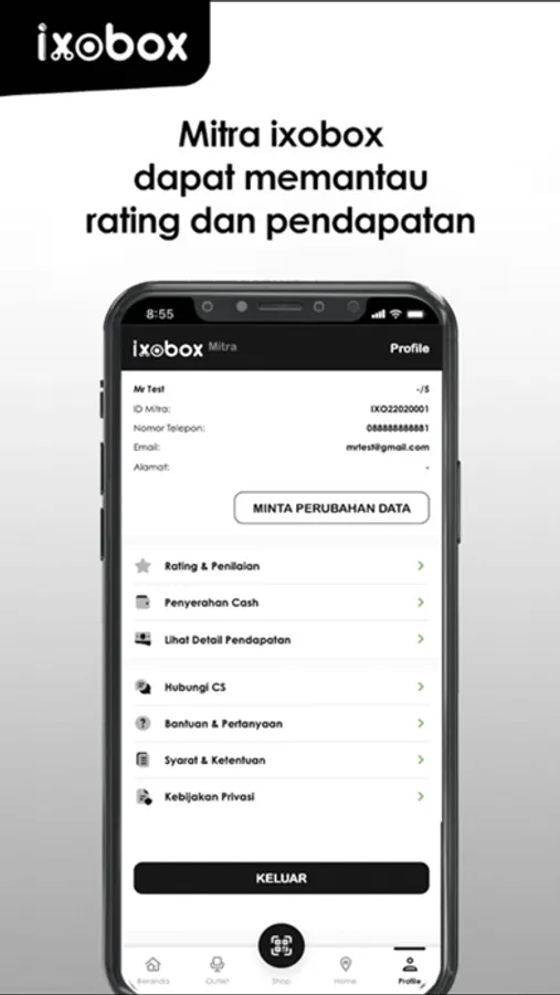 Aplikasi yang diciptakan untuk memudahkan kinerja Mitra Ixobox, dengan segala fiturnya yang dapat membantu memudahkan para Mitra dalam pekerjaan, memantau segala hal mulai dari order, absensi, pendapatan dsb. Aplikasi ditujukan agar mitra dapat melihat segala macam hal yang berhubungan dengan Mitra itu sendiri agar Mitra mendapatkan transparansi dalam segala hal yang berhubungan dengan pekerjaannya.