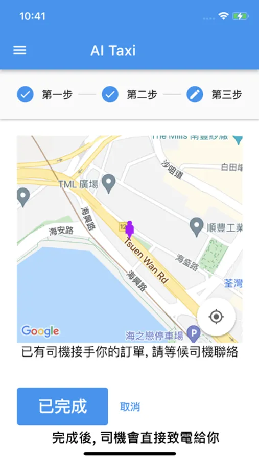 乘客們亦可透過地圖選擇上落地點及其他要求,AI Taxi App會將要求轉成語音並提交。