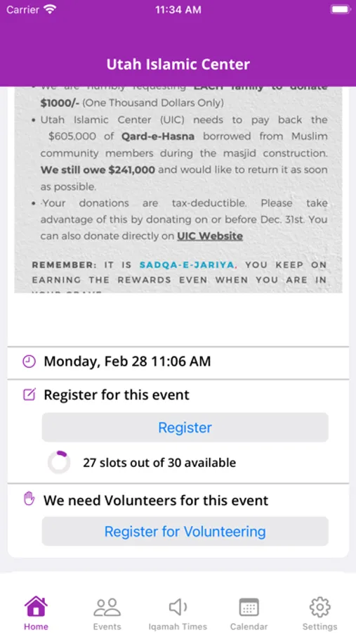 Allow members to do 1-Click registration for events including Jumah Prayers and sign up on Volunteering for different UIC events