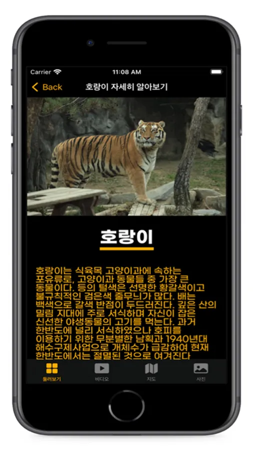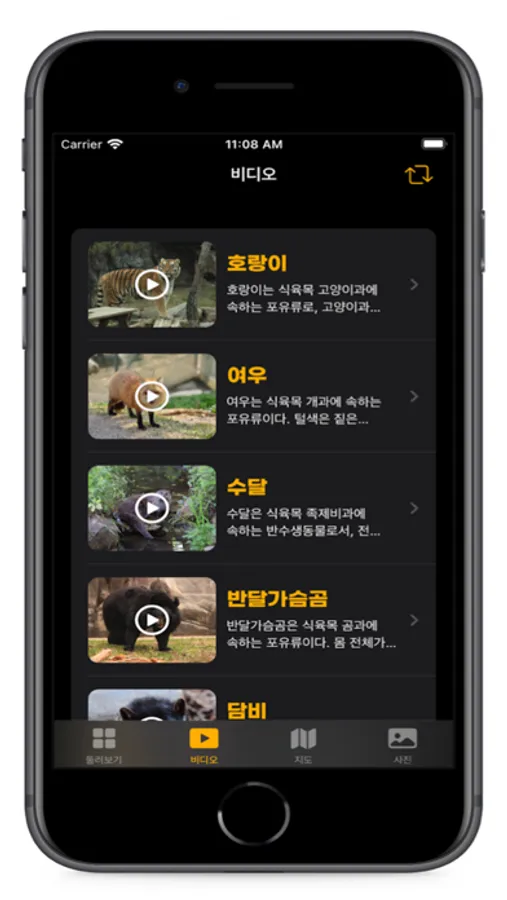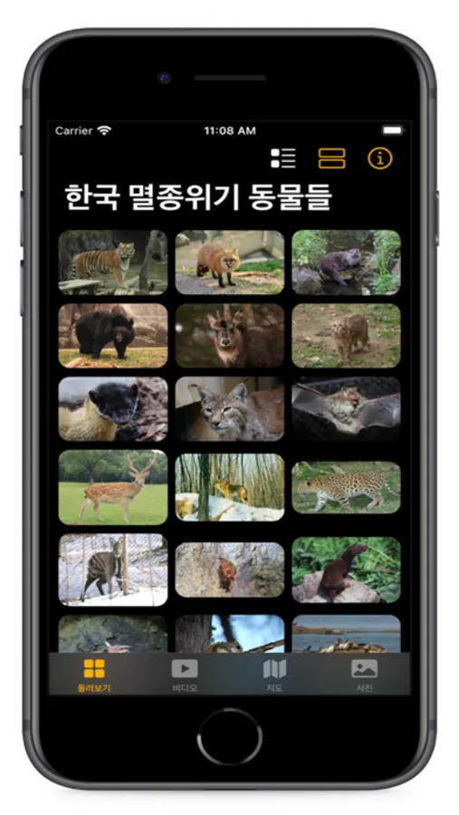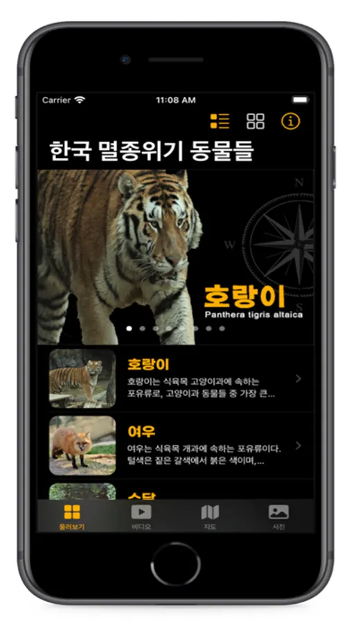 한국의 멸종위기 동물들의 정보를 확인할 수 있습니다. 멸종 위기 동물들의 사진, 영상, 주요 서식지 등의 정보를 제공합니다