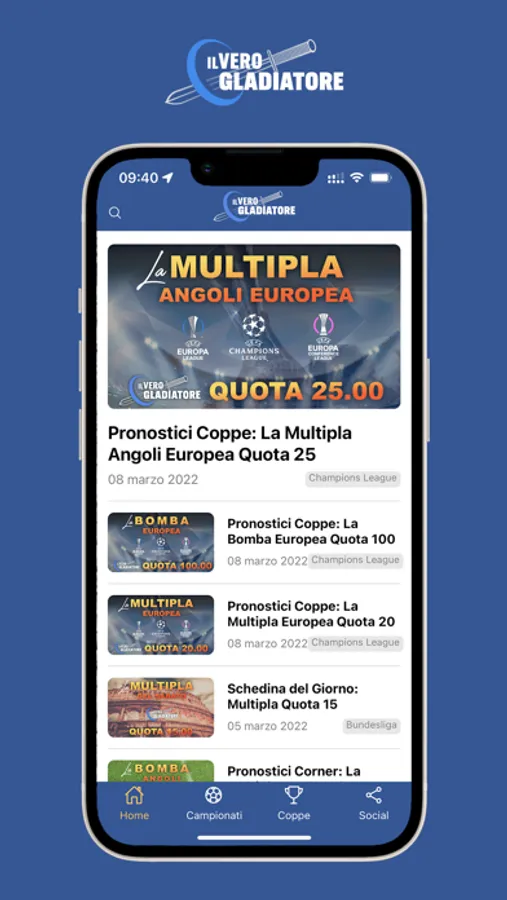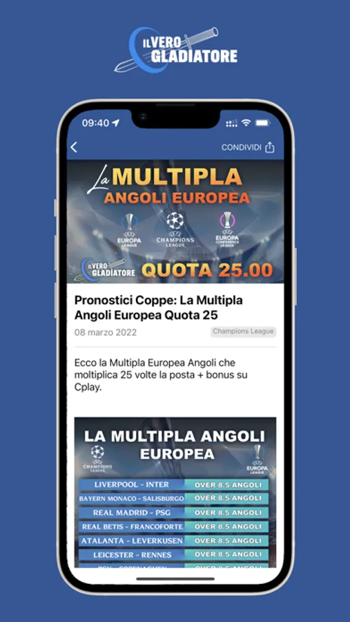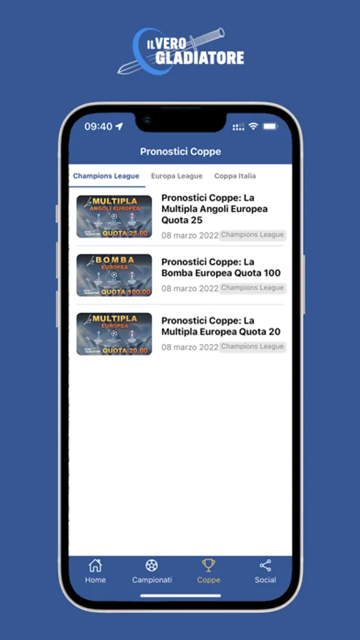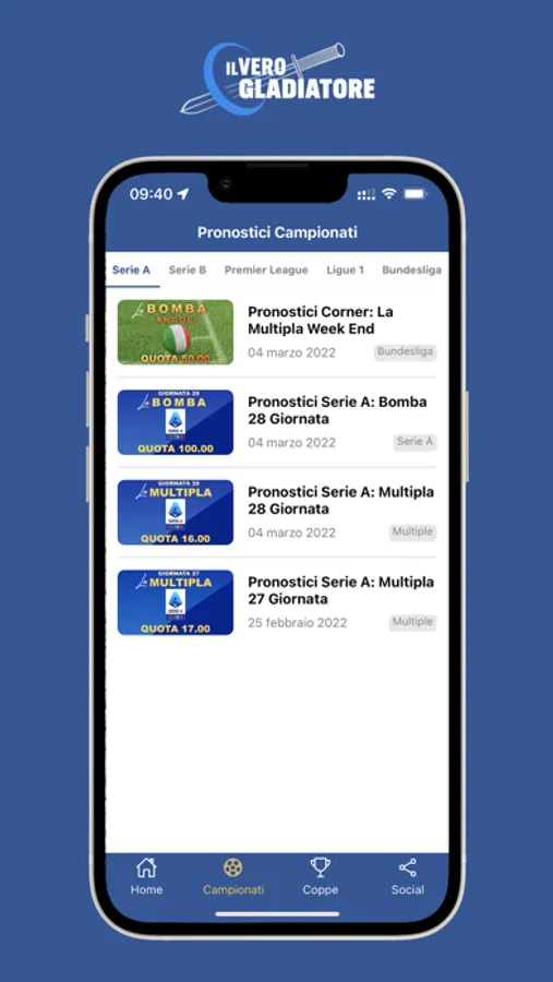 - Serie A, Serie B, Serie C, Premier League, Liga Spagnola, Liga Francia, Bundesliga, Eredivisie, Coppa Italia, Champions League, Europa League, Conference League, Mondiali, Europei e tanto altro...