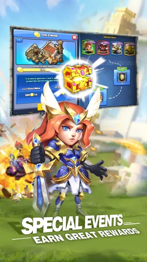 -Rune Chest, collect runes in battle and exchange them to get a chest or upgrade it for a better reward.
