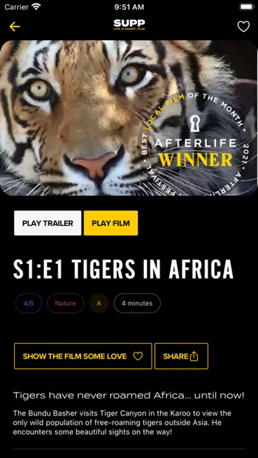 SUPP offers you a world-class experience of fresh short films which have been curated from all over the world. New films are added daily and are uploaded directly by the creatives who earn revenue with each view. SUPP exists to nurture and support emerging film makers by bridging the gap between them and their audience.