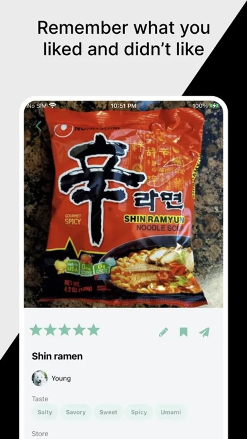 Just snap a picture of the product and rate it. You can also select taste notes and write a description or notes on preparing it for your reference.