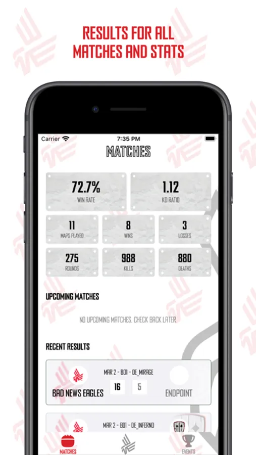 Check our upcoming CSGO matches, events and statistics.