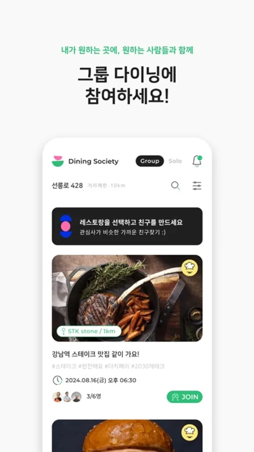 수많은 다이닝 중에 나에게 맞는 모임을 발견하고 참여하세요!
