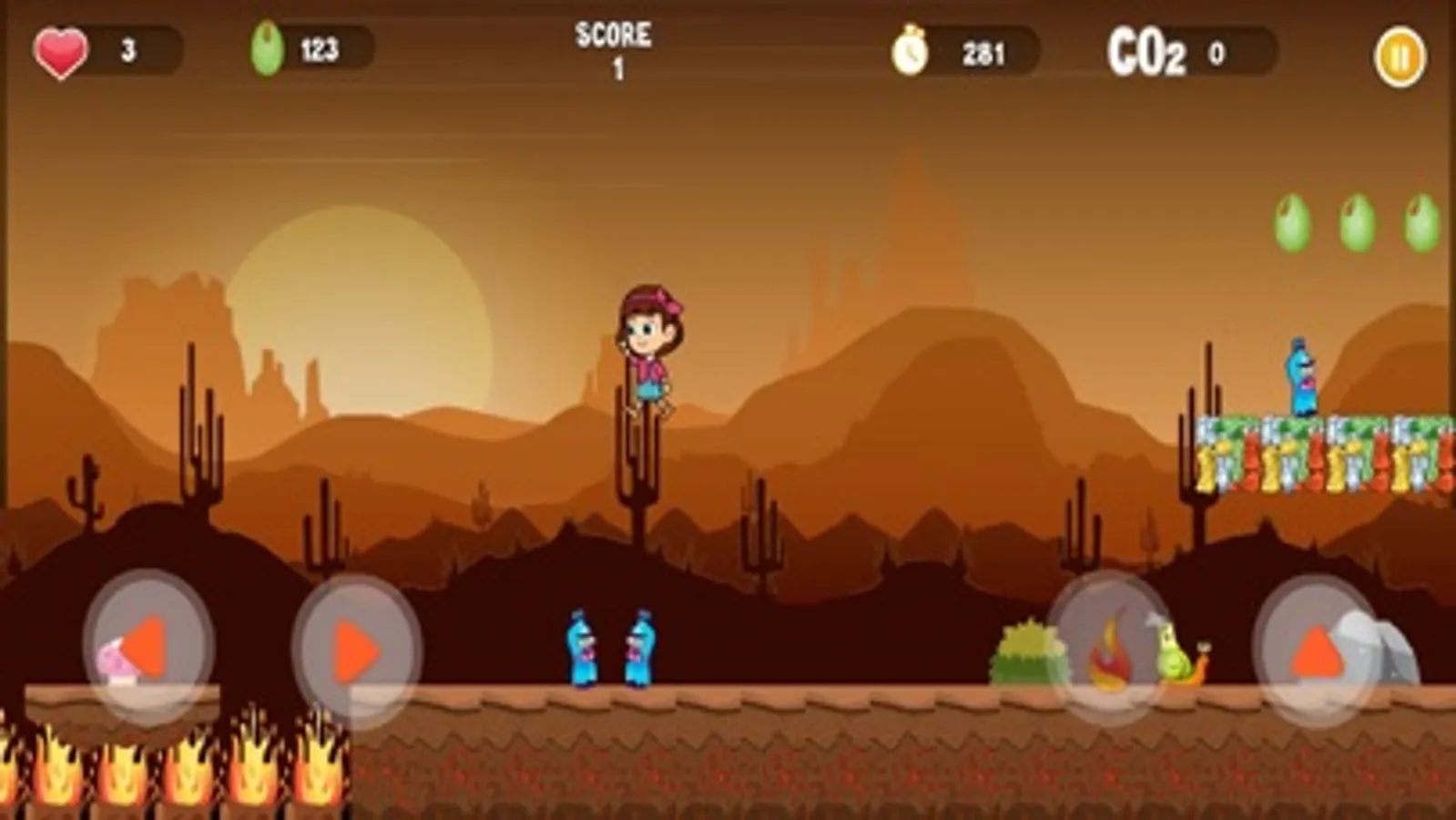 Choose to play with Captain Floris or Captain Anthea and emerge in a battle against climate change that is threatening the balance of mother earth. Players break the waste plastic blocks by using their amazing jumps, they stomp on the evil plastic bottles, and they also bump their head into blocks to collect seeds to reach the goal of reducing the world temperature by 2 degrees, The more plant seed they collect the more trees they can plant, the more plastic bottle they reduce the more the reduce the plastic pollution.