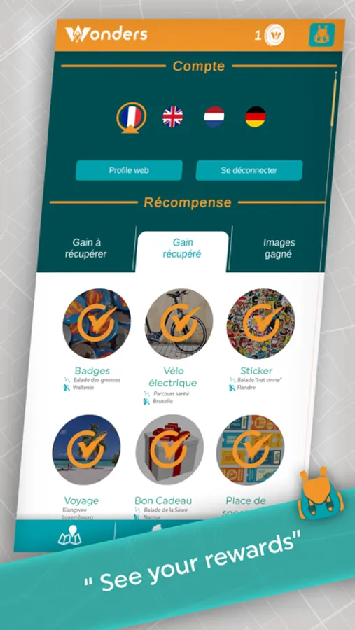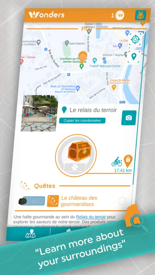 The Wonders application allows you to discover a territory through quests. Each territory contains a series of places to explore in order to collect a virtual treasure (symbolised by a "Wonder").