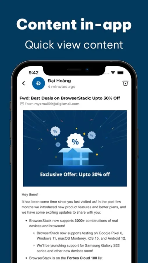 To avoid that and keep your inbox clear, use an instant temp mail address in our app to receive any incoming messages.